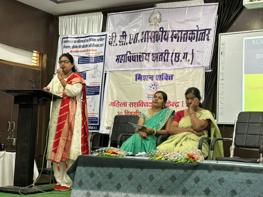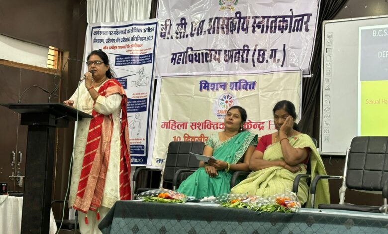 महिला सशक्तिकरण हेतु 10 दिवसीय विशेष जागरूकता कार्यक्रम – धमतरी में कार्यशाला आयोजित