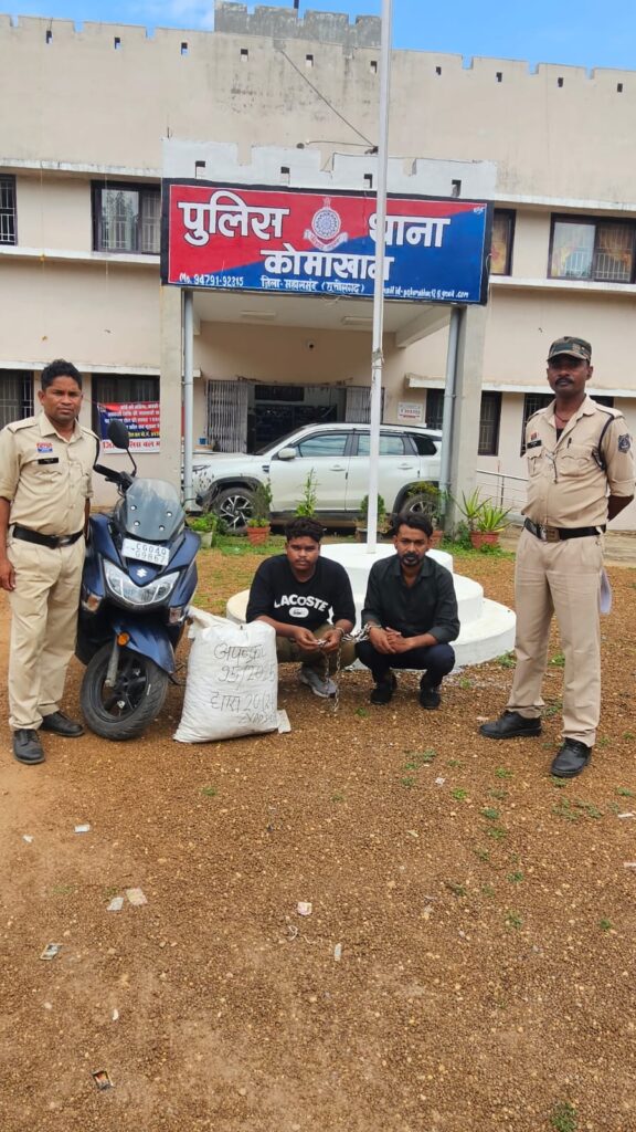 एंटी नारकोटिक्स टास्क फोर्स एवं थाना कोमाखान पुलिस की संयुक्त बड़ी कार्यवाही – 2 तस्कर गिरफ्तार, 9 किलो गांजा सहित 2.02 लाख का माल जप्त