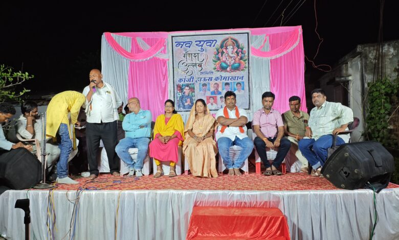 कोमाखान। नवयुवक गणेश उत्सव समिति कांजी हाऊस, कोमाखान द्वारा गणेशोत्सव के अंतिम दिवस अनंत चतुर्दशी पर भव्य भजन संध्या का आयोजन किया गया।इस अवसर पर महासमुंद जिले का सुप्रसिद्ध लोक कला मंच बकमा अपने कलाकार दल के साथ उपस्थित रही और उन्होंने पारंपरिक छत्तीसगढ़ी भक्ति गीतों की ऐसी मनमोहक प्रस्तुति दी कि पूरा वातावरण भक्तिरस में सराबोर हो उठा। श्रद्धालु, माताएं और बहनें देर रात तक भजन की धुनों पर झूमते नजर आए।