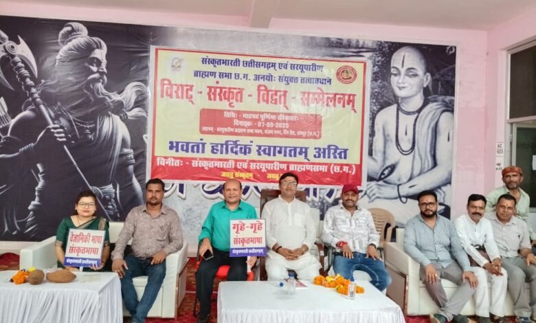 बेमेतरा । संस्कृत भारती छत्तीसगढ़ एवं सरयूपारीण ब्राह्मण सभा रायपुर के संयुक्त तत्वाधान में दिनांक 07.9.2025 दिन रविवार को सरयूपारीण ब्राह्मणसभा भाँठागांव रायपुर संस्कृत शिक्षकों का बृहद सम्मेलन आयोजित किया गया .उक्त सम्मेलन में प्रदेश भर के संस्कृत विद्वानों के अलावा बेमेतरा के भी संस्कृत शिक्षक सम्मिलित हुए .
