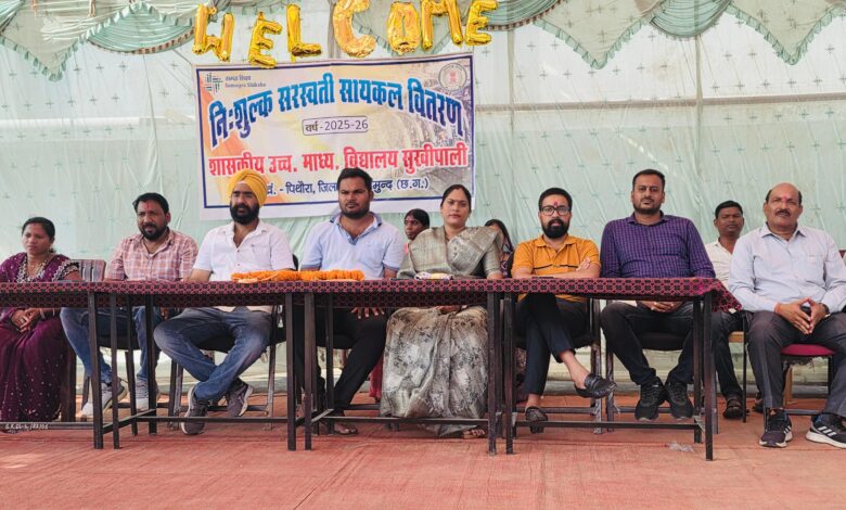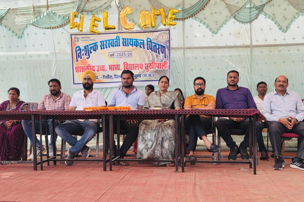 पिथौरा- सुखीपाली में आयोजित निःशुल्क साइकिल वितरण समारोह का शुभारंभ मुख्य अतिथि जनपद पंचायत अध्यक्ष उषा पुरूषोत्तम धृतलहरे कार्यक्रम की अध्यक्षता कर रहे जनपद पंचायत उपाध्यक्ष ब्रम्हानंद पटेल विशिष्ट अतिथि युवा मोर्चा प्रदेश कार्यसमिति सदस्य स्वप्निल तिवारी , जनपद सदस्य पुरर्षोत्तम घृतलहरे कवलजीत पम्मी छाबड़ा ,युवा मोर्चा जिला उपाध्यक्ष विजय नायक सरपंच सुरुति बुडेक टीकेलाल पटेल उपसरपंच भोगीलाल पटेल शाला विकास समिति के अध्यक्ष प्रेमशंकर प्रधान सोसायटी अध्यक्ष कन्हैया प्रधान रक्षपाल विशाल सुदर्शन मुन्ना मंडल मंत्री गोविंद पटेल पदुम साहू ने माँ सरस्वती के छायाचित्र पर माल्यार्पण कर कार्यक्रम का शुभारंभ किया ।