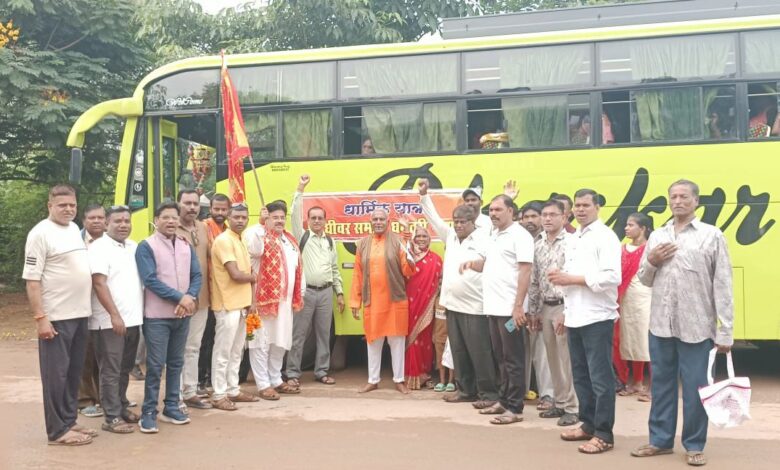महापौर रामू रोहरा ने धर्म ध्वजा दिखाकर 4 बसों को किया रवाना