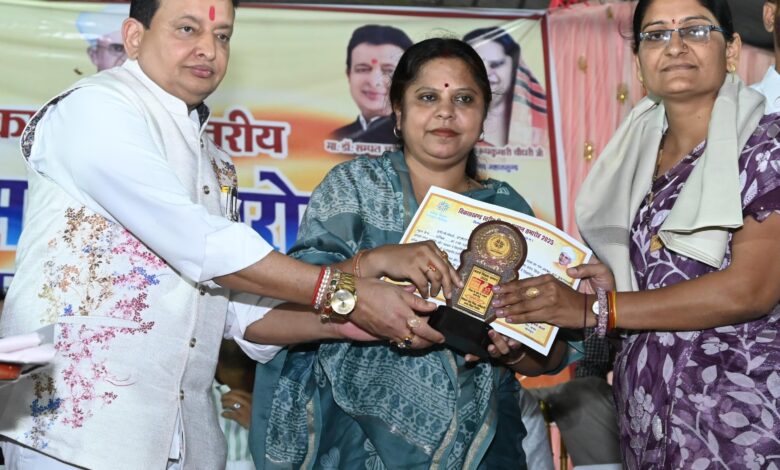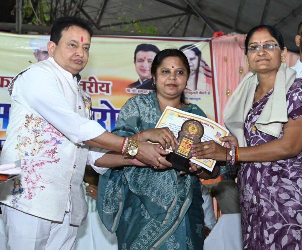 सम्मान समारोह का शुभारंभ अतिथियों द्वार मां सरस्वती व छत्तीसगढ़ महतारी के तैल चित्र पर दीप प्रज्ज्वलन पुष्प अर्पित कर राष्ट्रगान के साथ कार्यक्रम का शुभारंभ मुख्य अतिथि सांसद रुपकुमारी चौधरी कार्यक्रम की अध्यक्षता कर रहे विधायक सम्पत अग्रवाल अति विशिष्ट अतिथि ऊषा पुरर्षोत्तम घृतलहरे विशेष अतिथि नगर पंचायत अध्यक्ष देवेश निषाद जनपद उपाध्यक्ष ब्रम्हानंद पटेल जिलापंचायत सदस्य रामदुलारी सिंहा पूर्व जिला पंचायत अध्यक्ष उषा पटेल भाजपा मंडल अध्यक्ष आशीष शर्मा युवा मोर्चा प्रदेश कार्यसमिति सदस्य स्वप्निल तिवारी जनपद सदस्य पुरर्षोत्तम घृतलहरे कवलजीत छाबड़ा उषा श्रीवास्तव पूर्व मंडल अध्यक्ष नरेश सिंघल स्काउट गाइड संघ के अध्यक्ष सत्यनारायण अग्रवाल युवा मोर्चा जिला उपाध्यक्ष विजय नायक सांसद प्रतिनिधि मनमीत छाबड़ा पार्षद मन्नूलाल ठाकुर युवा मोर्चा अध्यक्ष विजयराज पटेल विधायक प्रतिनिधि सुरेंद्र पांडे मनमोहन जैन किशोर पटेल संजय गोयल नरेंद्र बोर ने किया।तत्पश्चात विकासखंड के 135 शिक्षकों को अतिथियों ने शाल व मोमेंटो भेट कर सम्मानित किया ।सम्मान समारोह को संबोधित करते हुवे मुख्य अतिथि के आसंदी महासमुंद सांसद रूपकुमारी चौधरी ने कहा की देश की दशा और दिशा तय करने में शिक्षकों की भूमिका महत्वपूर्ण होती है। कार्यक्रम की अध्यक्षता कर रहे विधायक संपत अग्रवाल ने कहा कि एक डाक्टर इंजीनियर वैज्ञानिक या कोई भी पेशेवर अपने मुकाम तक पहुचते है तो उनके पीछे शिक्षक का ही हाथ होता है शिक्षक ना केवल समाज का मार्गदर्शक होता है बल्कि राष्ट्र के भविष्य का निर्माता भी होता है।कार्यक्रम का स्वागत भाषण एस डी एम बजरंग वर्मा ने दिया एवं आभार प्रदर्शन विकास खंड शिक्षा अधिकारी लक्ष्मी डड़सेना ने किया एवं मंच संचालन एफ़ ए नंद ने किया ।इस अवसर पर अधिकारी कर्मचारी फेडरेशन के तहसील अध्यक्ष उमेश दीक्षित जनप्रतिनिधि अधिकारी कर्मचारी उपस्थित थे।कार्यक्रम को सफल बनाने में विकास खण्ड शिक्षा अधिकारी लक्ष्मी डड़सेना, विकास खण्ड स्रोत समन्वयक नरेश पटेल विकास खण्ड साक्षरता नोडल अधिकारी अरुण कुमार देवता, समन्वयक संध के अध्यक्ष शिशुपाल प्रधान,समन्वयक खगेश्वर डडसेना, विक्रम सिंह वर्मा,रोहिणी देवांगन, राजाराम पटेल, अशोक पटेल, राजेन्द्र प्रसाद मार्कण्डेय, टेकराम निषाद, लोकनायक डड़सेना, बाला राम दीवान, अंजय कश्यप, तुलाराम राणा, लखन लाल कुर्रे मुकेश पटेल, किशोर पटेल का विशेष योगदान रहा।