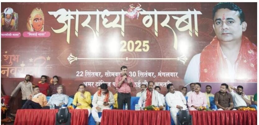 धमतरी के अमर टाकीज परिसर में आयोजित आराध्य गरबा के चौथे दिन एक विशेष भक्त अतिथि बने, छत्तीसगढ़ भाजपा के संगठन मंत्री पवन साय मंच पर विराजे, माता दुर्गा की आरती की, पवन साय पहले राष्ट्रीय स्वयंसेवक संघ के प्रचारक भी रह चुके है और अब भाजपा संगठन को सम्हाल रहे है।
