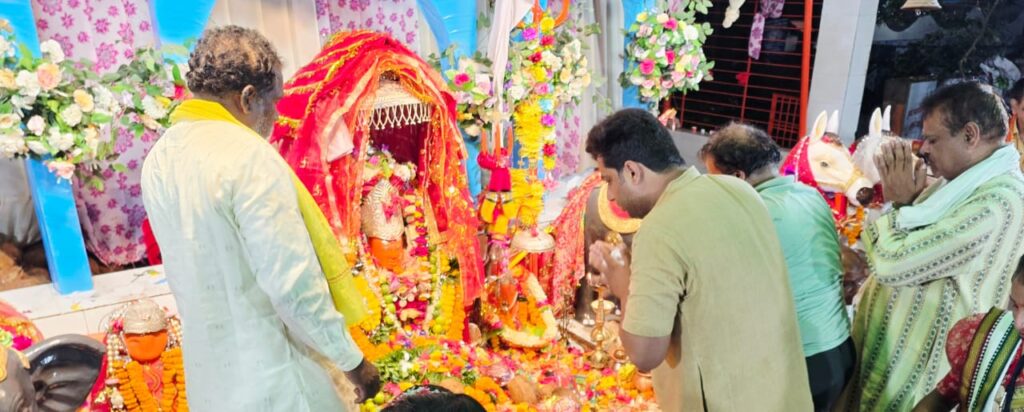 वनदेवी माता अंगार मोती की हवन पूजन में शामिल होकर क्षेत्रवासियों के सुख समृद्धि शांति हेतु निगम सभापति विजय ने कि प्रार्थना