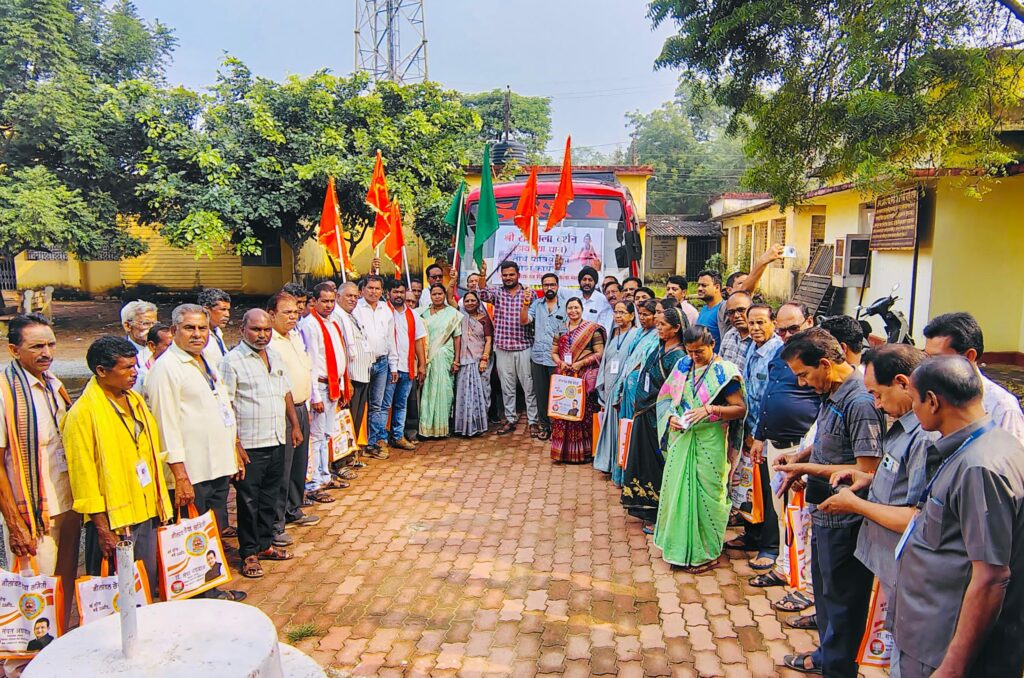 पिथौरा। जनपद पंचायत पिथौरा में आज धार्मिक और आध्यात्मिक वातावरण उस समय भावविभोर हो उठा जब श्री रामलला दर्शन अयोध्या यात्रा के यात्रियों को जनपद उपाध्यक्ष ब्रह्मानंद पटेल, जिला पंचायत सदस्य रामदुलारी सीताराम सिन्हा, भारतीय जनता युवा मोर्चा प्रदेश कार्यसमिति सदस्य स्वप्निल तिवारी, सांसद प्रतिनिधि मनमीत छाबड़ा, मंडल अध्यक्ष अभिमन्यु प्रधान, पूर्व मंडल अध्यक्ष नरेश सिंघल, मन्नूलाल ठाकुर,सीताराम सिंहा,सादराम पटेल, युवा मोर्चा जिला उपाध्यक्ष विजय नायक, पार्षद पुष्पकांत पटेल, मंडल कोषाध्यक्ष राजेश चौधरी, किशोर पटेल, मनमोहन जैन, रमेश पटेल, सरजू तिवारी एवं सतीश ध्रुव ने विधिवत रूप से हरी झंडी दिखाकर रवाना किया।