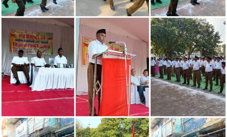 राष्ट्रीय स्वयंसेवक संघ के शताब्दी वर्ष पर धमतरी में भव्य पथ संचलन एवं बौद्धिक कार्यक्रम संपन्न