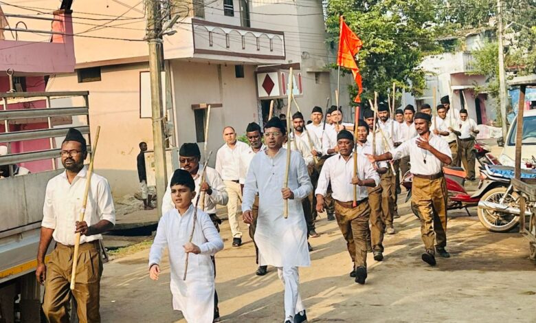 नमस्ते सदा वत्सले मातृभूमि की राष्ट्र भावना से प्रेरित स्वयंसेवकों का पथ संचलन