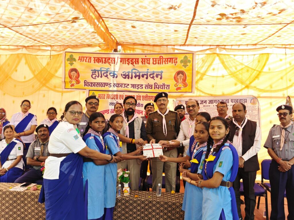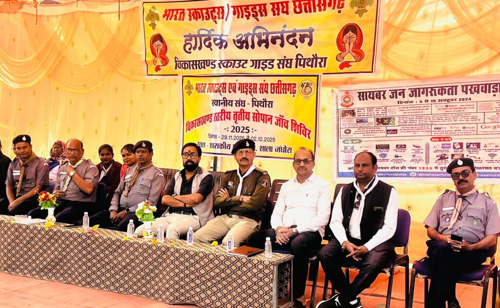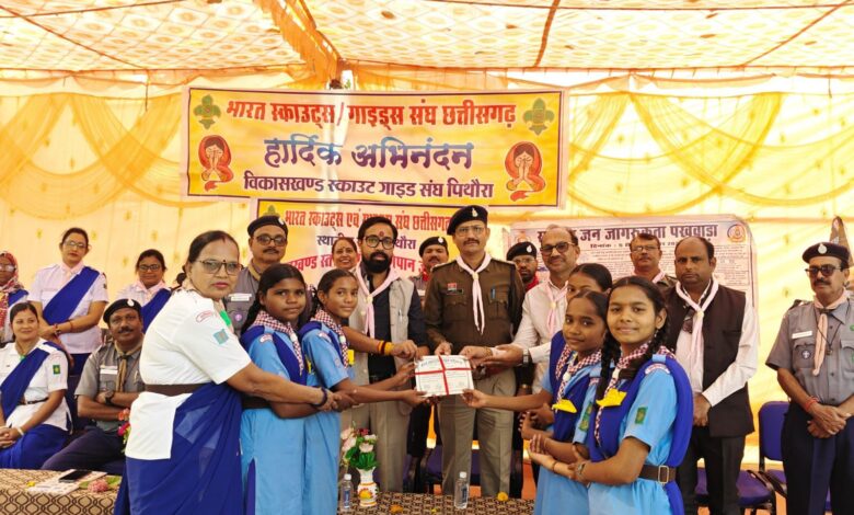 पिथौरा :- भारत स्काउट्स गाइड्स तृतीय सोपान जांच शिविर का समापन एवं प्रमाणपत्र वितरण समारोह आज जँघोरा के शासकीय उच्च प्राथमिक शाला जघोंरा में आयोजित किया गया थाl