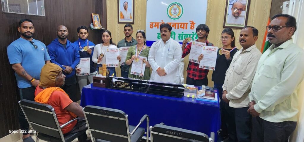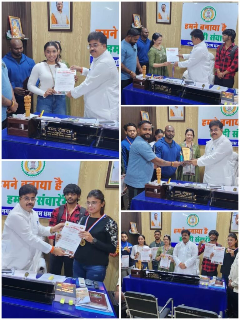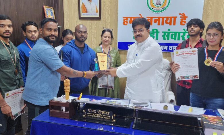 महापौर रामू रोहरा ने निगम कार्यालय में किया मेडलिस्ट पावर लिफ्टिंग एवं बॉडीबिल्डिंग चैंपियनों का सम्मान*