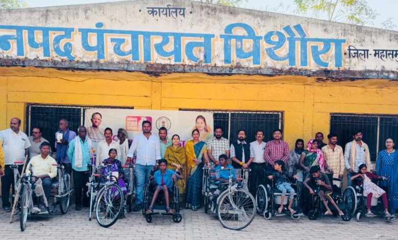 पिथौरा। जनपद पंचायत पिथौरा में दिव्यांगजनों को अध्यक्ष उषा पुरूषोत्तम घृतलहरे, उपाध्यक्ष ब्रम्हानंद पटेल, भाजपा के जिला प्रवक्ता स्वप्निल तिवारी के द्वारा सहायक उपरकणों का वितरण समारोह पूर्वक किया गया।