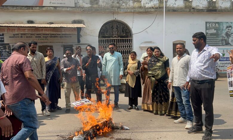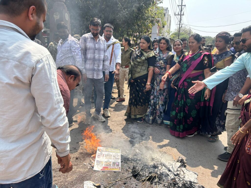 धमतरी. गांधी मैदान धमतरी में महिला कांग्रेस के पदाधिकारियो, कार्यकर्ताओ ने जोरदार विरोध-प्रदर्शन करते हुए प्रधानमंत्री नरेंद्र मोदी का पुतला फूंका। प्रदर्शन का नेतृत्व महिला कांग्रेस अध्यक्ष शास्त्री सोनवानी, अम्बिका सिन्हा ने किया। महिला कांग्रेस ने आरोप लगाया कि ‘एपस्टीन फाइल्स’ में केंद्रीय मंत्री हरदीप सिंह पुरी का नाम सामने आया हैं। जिला अध्यक्ष तारिणी चंद्राकर ने कहा, विश्व के सबसे बड़े लोकतंत्र के प्रधानमंत्री को देश की संप्रभुता और अस्मिता के सवाल पर स्पष्ट रुख रखना चाहिए। उन्होंने आरोप लगाया कि अगर मंत्रिमंडल के किसी सदस्य का नाम अंतरराष्ट्रीय स्तर पर किसी विवादित दस्तावेज में आता है, तो सरकार को देश के सामने स्थिति स्पष्ट करनी चाहिए। आगे कहा कि भारत अपनी संप्रभुता के साथ किसी भी तरह की छेड़छाड़ स्वीकार नहीं करेगा। महिला कांग्रेस भाजपा के हर कथित कुर्कृत्य का लोकतांत्रिक तरीके से विरोध करती रहेगी। प्रदर्शन के दौरान कार्यकर्ताओं ने “एपस्टीन फाइल डील पर जवाब दो” जैसे नारे लगाए। इस दौरान जिला कांग्रेस कमेटी अध्यक्ष तारिणी चंद्राकर, पूर्व जिला अध्यक्ष मोहन लालवानी, पूर्व महापौर विजय देवांगन, महिला कांग्रेस शहर अध्यक्ष शास्त्री सोनवानी, महिला कांग्रेस ग्रामीण अध्यक्ष अंबिका सिन्हा, पूर्व ब्लाक अध्यक्ष आकाश गोलछा, नेता प्रतिपक्ष दीपक सोनकर, उपनेता प्रतिपक्ष विशु देवांगन, जिला सचिव विक्रांत पवार, पार्षद सुमन मेश्राम, लोकेश्वरी साहू, वीणा देवांगन, संजय, डागौर राकेश मौर्या, शैलेंद्र दीवान, गीतराम सिन्हा, देवेंद्र देवांगन, सूरज पासवान, मोहिनी साहू, जित्तू साहू, हीना ध्रुव, सबीना खान, वतंजलि गोस्वामी, अविनाश मारोठे, योगेश्वर साहू, यशनारायण दुबे, मानिक साहू, सलीम तिगाला, नमन बंजारे, सूर्या बघेल, रुद्रा साहू सहित बड़ी संख्या मे कांग्रेस कार्यकर्ता उपस्थित रहे।