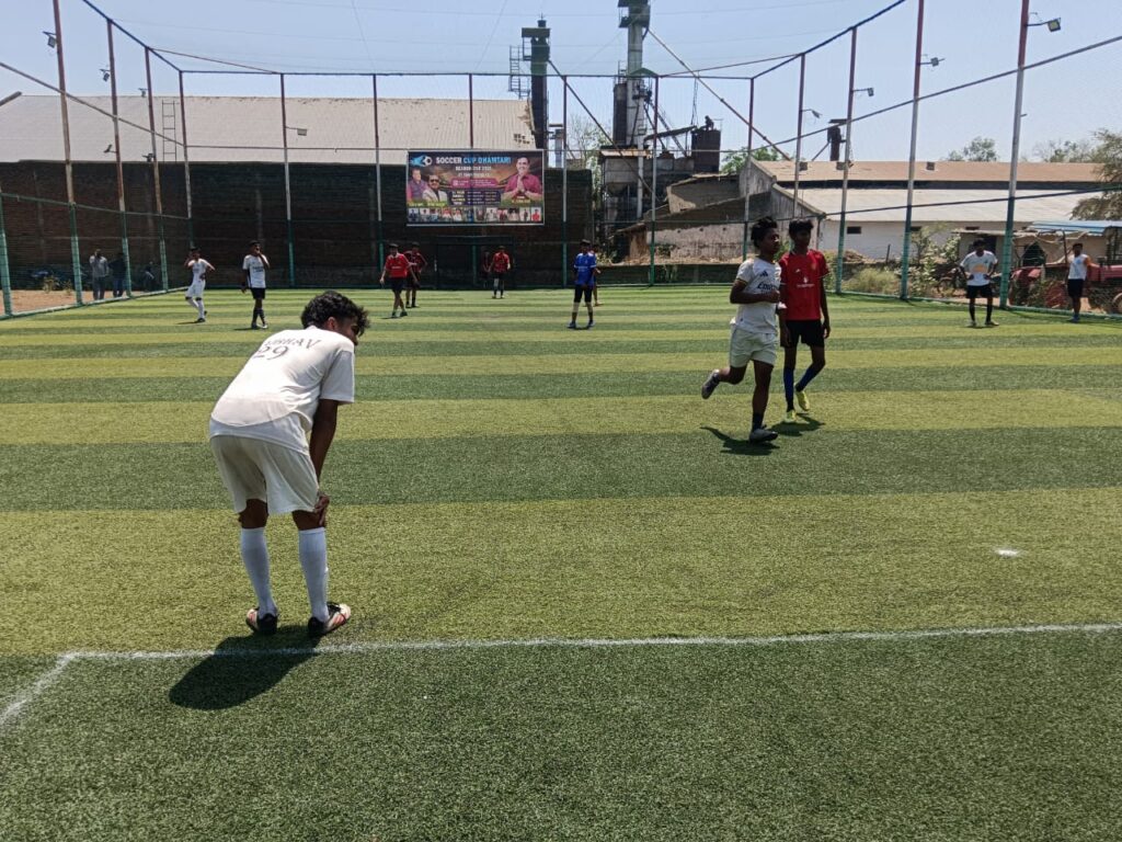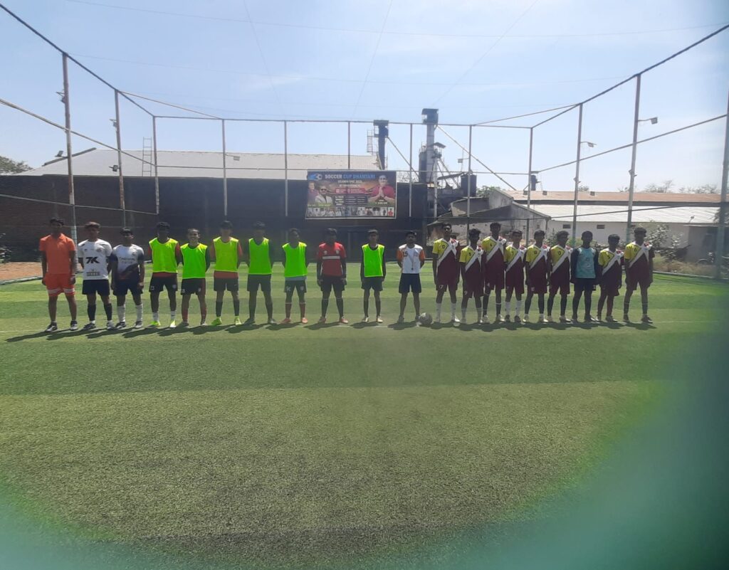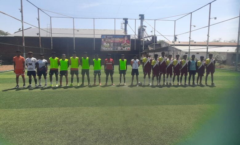 फूटबॉल मैच का शुभारंभ, मैदान पर पसीना बहा रहे हैं खिलाड़ी… रायपुर, कांकेर,चारामा, राजनांदगांव की टीम ले रही है भाग….
